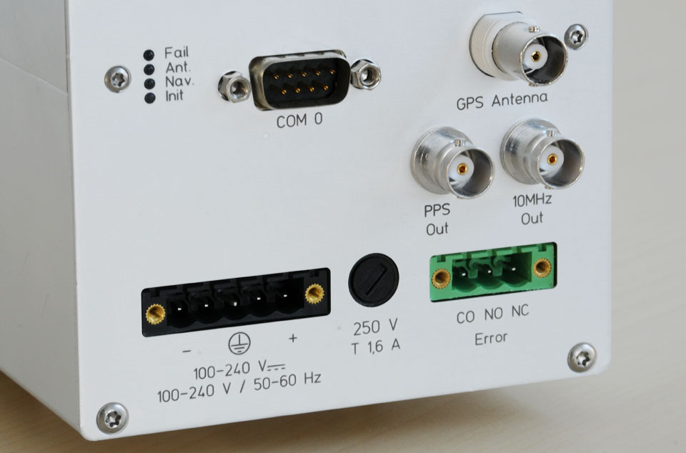 | Frequenzausgänge | 10 MHz über BNC-Buchse, TTL an 50 Ohm Genauigkeit abhängig vom Oszillator (Standard: TCXO), siehe Oszillatorliste |