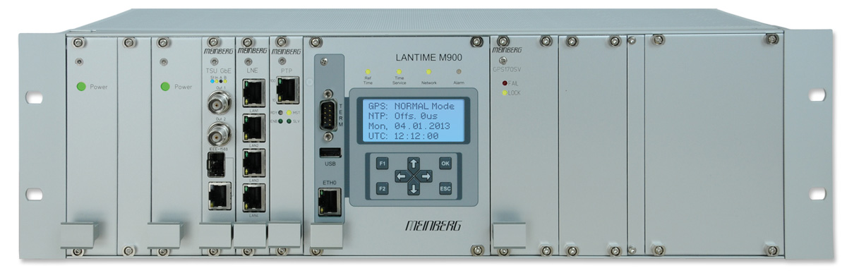 LANTIME M900/PTP: Kundenspezifischer PTPv2 / IEEE 1588-2008 Grandmaster Clock und NTP Server im 3HE Chassis