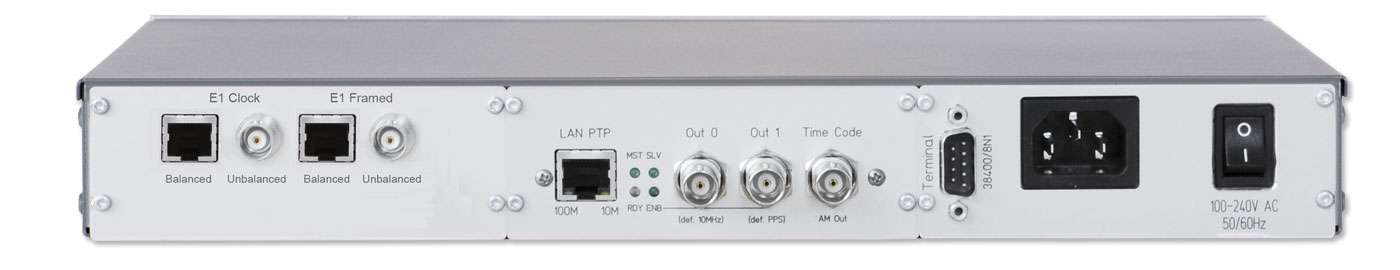 | Frequenzausgänge | 10 MHz über BNC-Buchse, TTL an 50 Ohm Genauigkeit abhängig vom Oszillator (Standard: OCXO HQ), siehe Oszillatorliste |