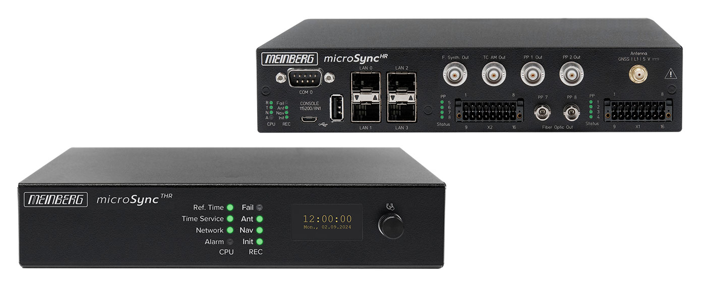 Alle Varianten des microSync(T)HR verfügen über mehrere programmierbare Ausgangssignale (zwei davon über Glasfaser ST-Anschlüsse), vier Gigabit-Ethernet-Schnittstellen und die Möglichkeit, sowohl NTP- als auch PTP-Systeme zu synchronisieren.