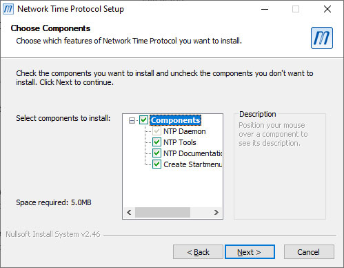 Neben einer stabilen Version des NTP-Programmpakets enthält das Installationsprogramm auch die komplette HTML-basierte Dokumentation sowie die libcrypto-DLL des OpenSSL-Projekts, die bei Verwendung von Symmetric Keys oder Autokey zur Erzeugung und Überprüfung der Signaturen der NTP-Netzwerk-Pakete benötigt wird.