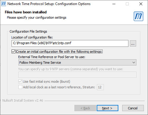 Das von Meinberg bereitgestellte grafische NTP-Setup-Programme für Windows installiert den NTP-Service sowie einige Zusatzprogramme, die aus dem Original-NTP-Quellcode erzeugt wurden, der auf der NTP-Download-Seite bei ntp.org frei verfügbar ist.